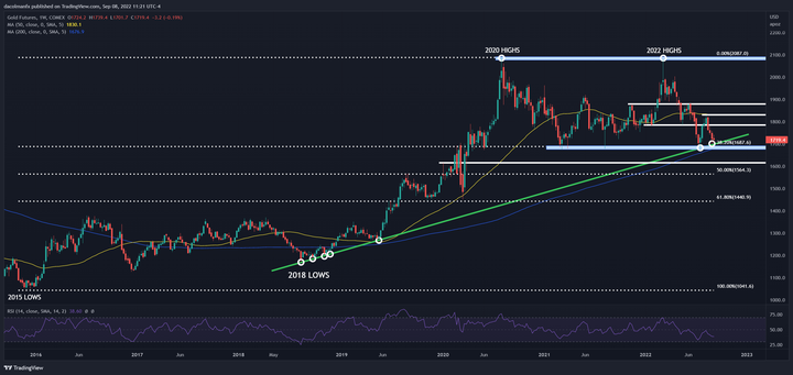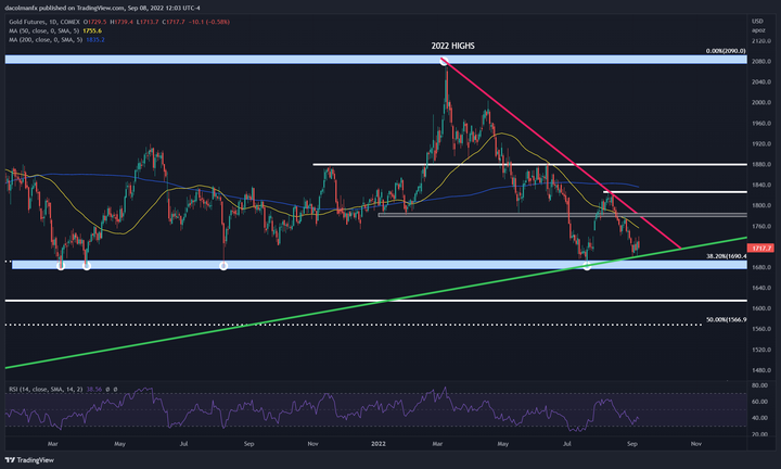 • 在上周早些时候从1700美元反弹后,金价似乎正在企稳。
