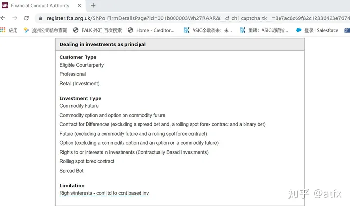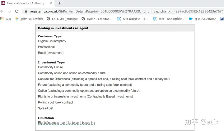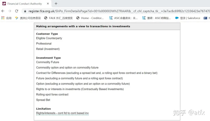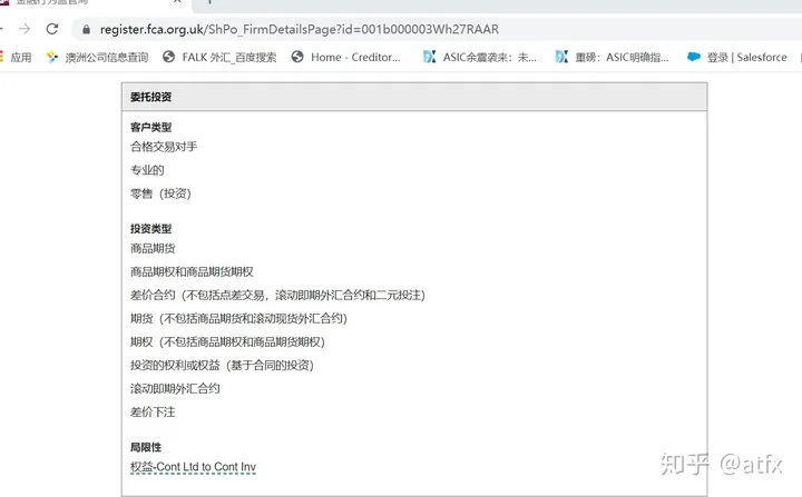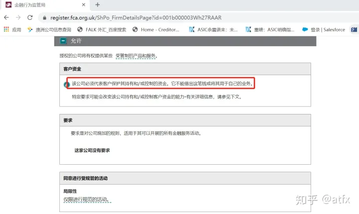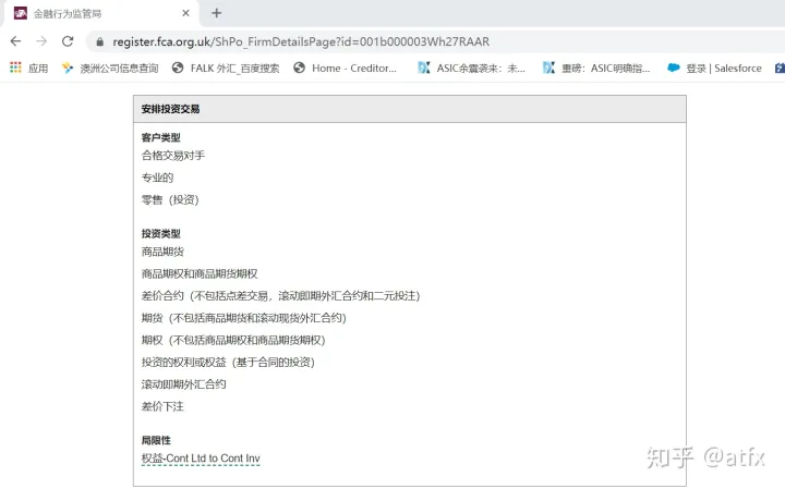 可见,FCA授权了该公司持有客户的资金,但是客户资金不能挪用(就是客户可以给该公司的对公账户存款);再往下翻,能看到该公司被授权提供的业务项目如:“安排带来/促成投资交易”“代理投资交易”“委托投资交易”“安排投资交易”