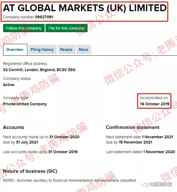 事实证明也确实是这样的,ATFX持有FCA牌照的公司叫AT Global Markets(UK) Limited,这家公司成立于2015年,注册号为09827091!!