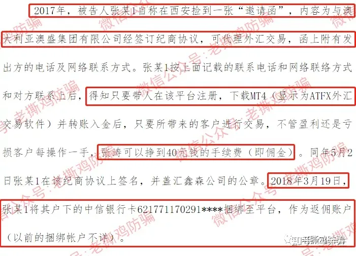 今天主要讲ATFX的前身ABS澳盛吃客损的传统,恰好在ABS澳盛过渡到ATFX的时候,有一个被公诉的案件,足以证明他们吃客损!!被告张某自称捡到一张邀请函(明显隐瞒了代理过程的实情),结果就是跟澳大利亚澳盛集团签订了代理经纪协议,然后下载的MT4软件为ATFX的!!