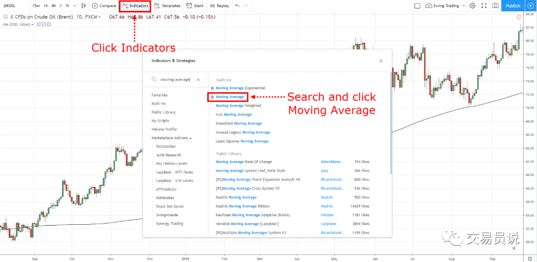 移动平均线是一种平均价格数据的交易指标,它在你的图表上显示为一条线。
