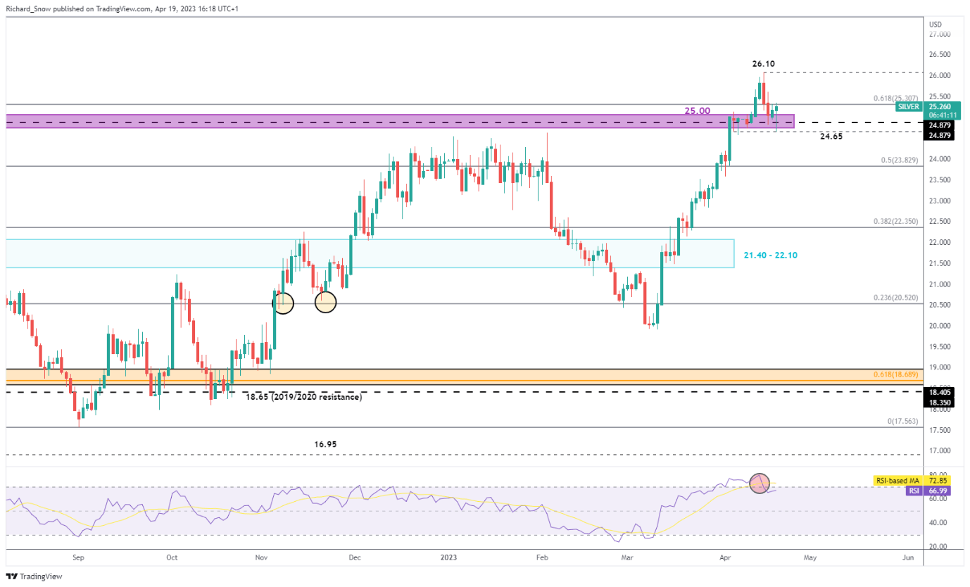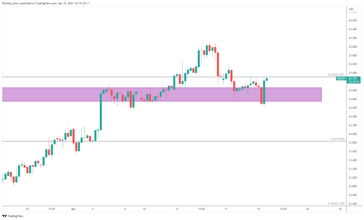 自硅谷银行SVB倒闭事件以来,白银一直处于大规模牛市中,且每次回调幅度非常小,进一步加强了看涨趋势的强度。最近的回调恰好与美元的相对强势相吻合。