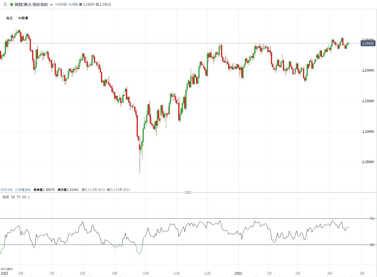 英镑/美元价格图和相对强弱指数(RSI)
