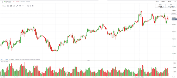 英镑/美元一小时图叠加累计成交量数据,来源@IG.com