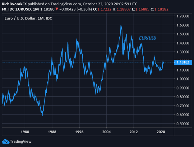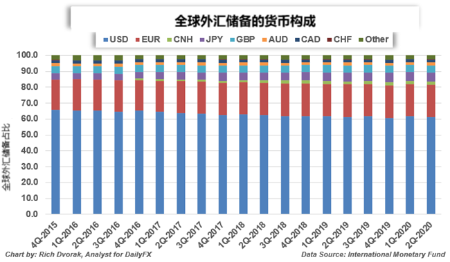 事实上,根据国际货币基金组织最近的一份报告,美元和欧元占分别占全球外汇储备的61.3%和20.3%。美元和欧元在外汇储备总量中占比超80%凸显了欧元/美元相对其他主要货币对享有绝对主导的流动性优势。而这一现象大致可归因於美国和欧盟是世界上最大的两个经济体。