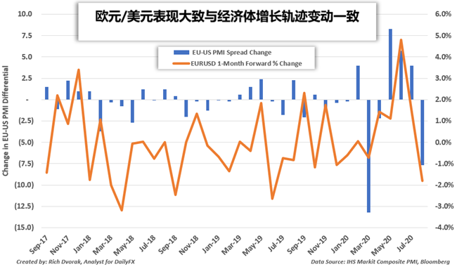 欧元/美元汇率大致随经济增长轨道而变动(图6)